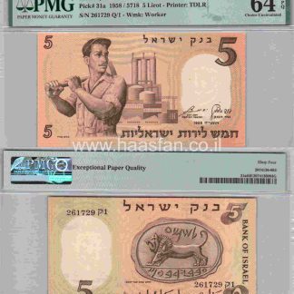 5 לירות 1958, ישראל – בדירוג PMG 64 Choice Uncirculated