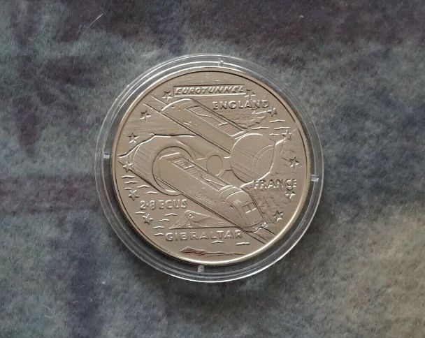 פירוט על המוצר: גיברלטר 2.8 ECU 1993 פתיחת מנהרת היורו, המלכה אליזבת קפסולח מטבעות