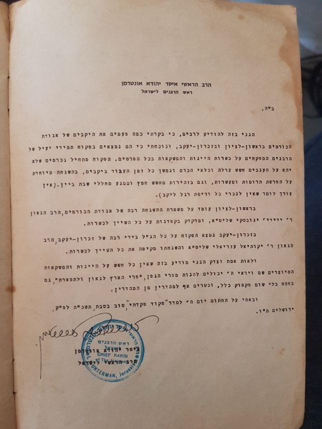 פירוט על המוצר: הגדה של פסח משנת 1964 של כרמל מזרחי עם חותמת של הרב הראשי לישראל: איסר יהודה אונטרמן