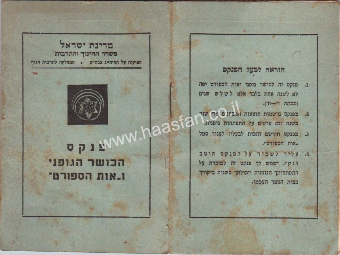 שם המוצר: פנקס הכושר הגופני משנות ה50 – משרד החינוך והתרבות