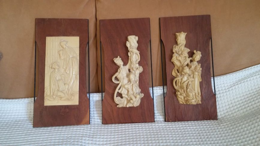 פירוט על המוצר: 3 תמונות וינטג' משנות ה 60 70 פיסול שיש על עץ