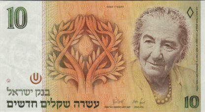 3 שטרות של 10 שקלים (גולדה) מהשנים 1985, 1987, 1992 במצב UNC