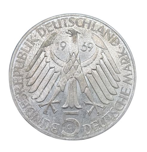 5 מארק 1969 מכסף 0.625, גרמניה – 125 שנה – הולדתו של תיאודור פונטנה