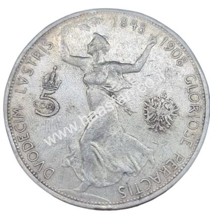 5 קורונה 1908, אוסטריה-הונגריה – כסף 0.900 – 60 שנות שלטון
