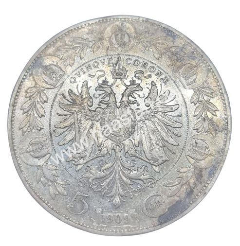 5 קורונה 1909, אוסטריה-הונגריה – כסף 0.900
