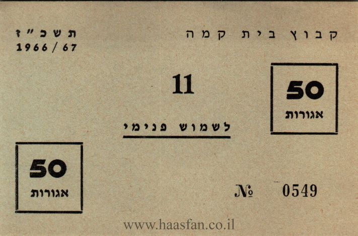 50 אגורות – קיבוץ בית קמה, 1966/1967 – אמצעי תשלום