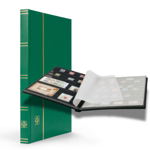 אלבום בולים "BASIC" עם כריכה קשיחה – 32 דפים (64 עמודים) תוצרת Leuchtturm, גרמניה – צבע ירוק