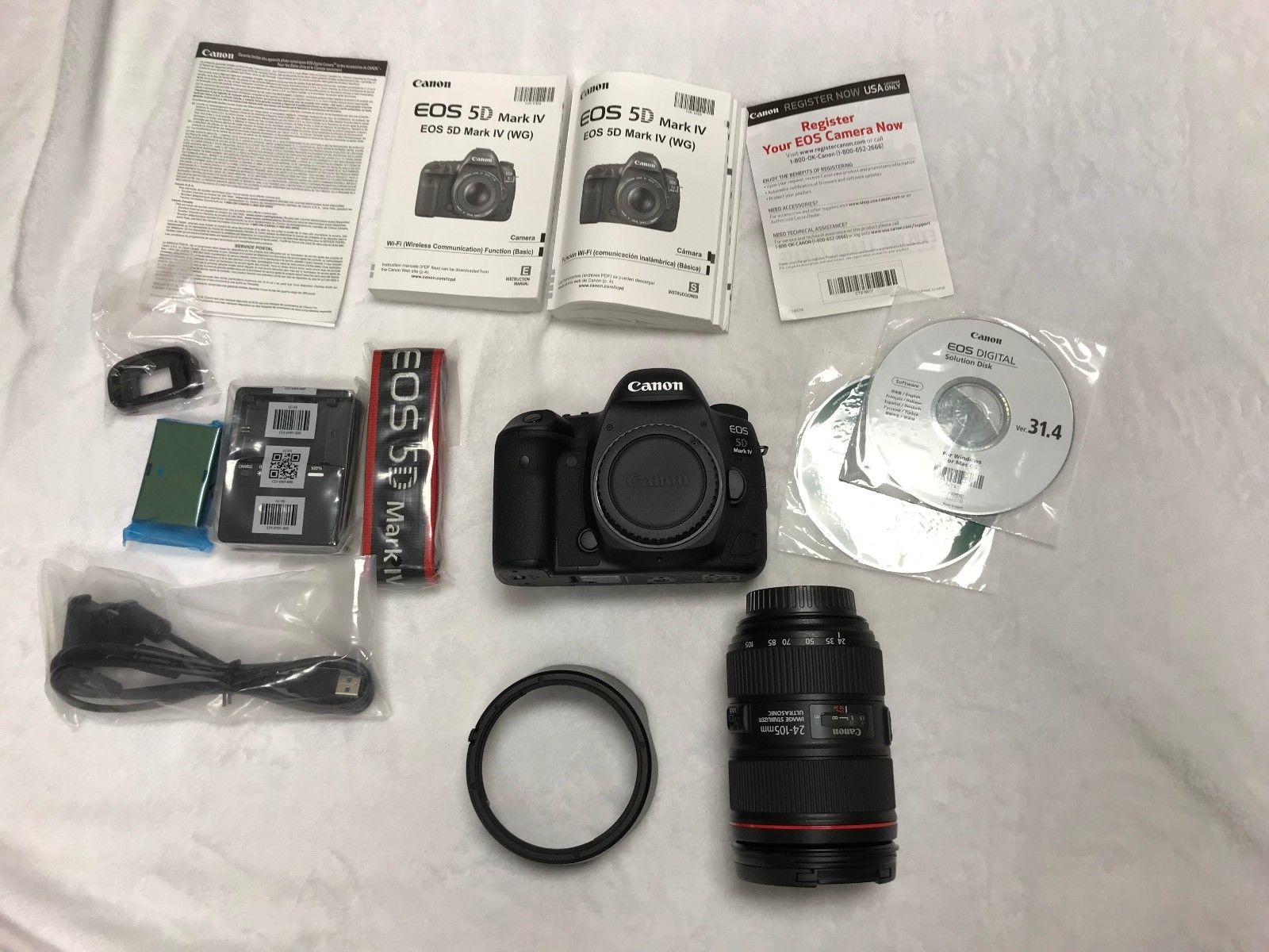 פירוט על המוצר: מכירת מצלמת ה- SLR הדיגיטאלית SLR עם Canon EOS 5D Mark IV עם Canon EF 24-105 מ"מ f / 4L IS II עדשת USM. חדש לגמרי, מעולם לא נפתח (תמונות להוכחה).