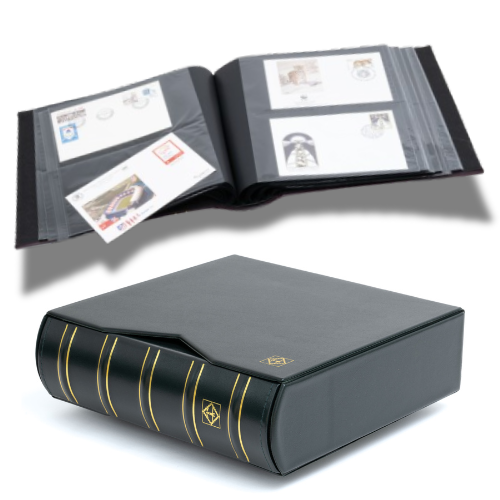 The album includes 50 double-sided transparent sheets, suitable for items up to 195 × 130 mm, allowing convenient display of up to 200 items in total. The sheets are durable, easy to flip, and ensure optimal long-term preservation of your collection with integrated black interleaves. The sheets are closed on 3 sides, easy to fill from the top