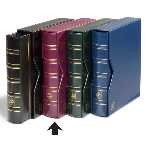שם המוצר: אלבום איכותי בצבע אדום מסדרת OPTIMA – מתאים לאחסון מטבעות, שטרות, מדליות, בולים, גלויות, מעטפות וטלכרטים – כולל מכסה הגנה קשיח